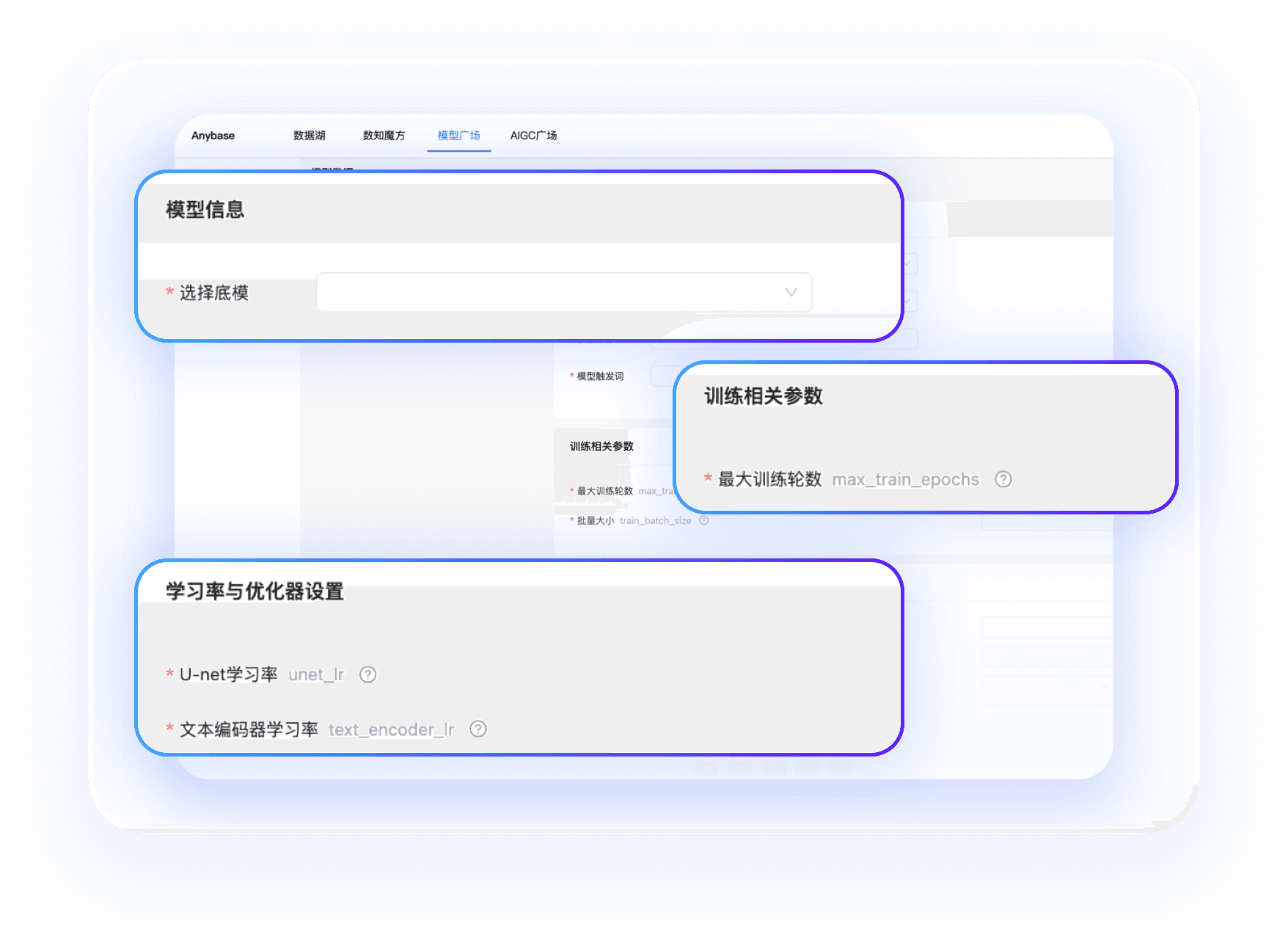 针对特定业务场景,提供直观的模型训练界面,支持选择多样化的底模并进行参数配置,实现高效的模型微调。通过多任务测试与评估,持续优化模型性能,确保AI能力与业务需求高度契合。