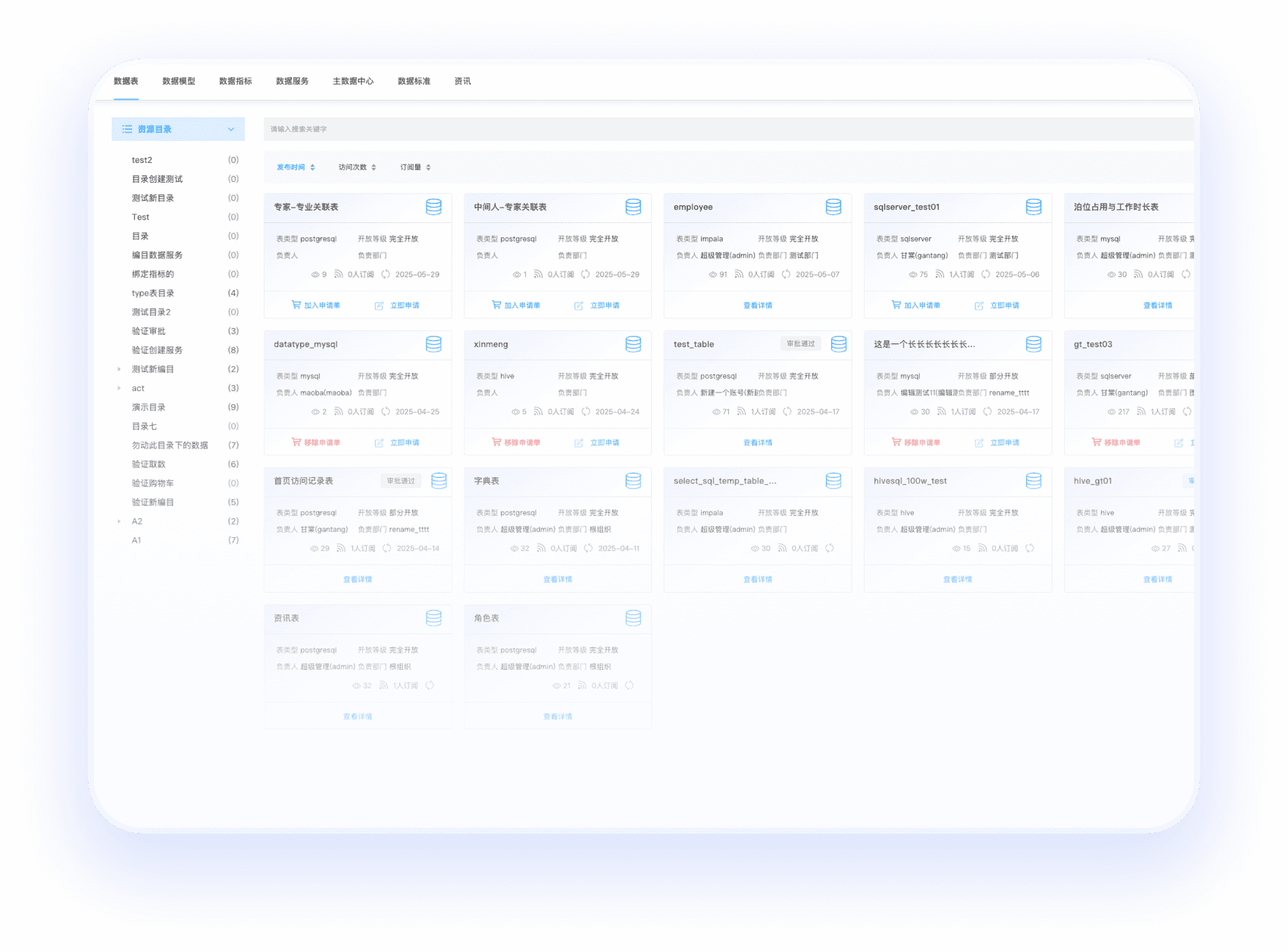 基于 DCAT、DAMA 等行业标准搭建多级分类体系,支持按部门、业务线、数据格式、安全级别等多维度编目,结合语义检索引擎,实现数据精准分类与资产定位。