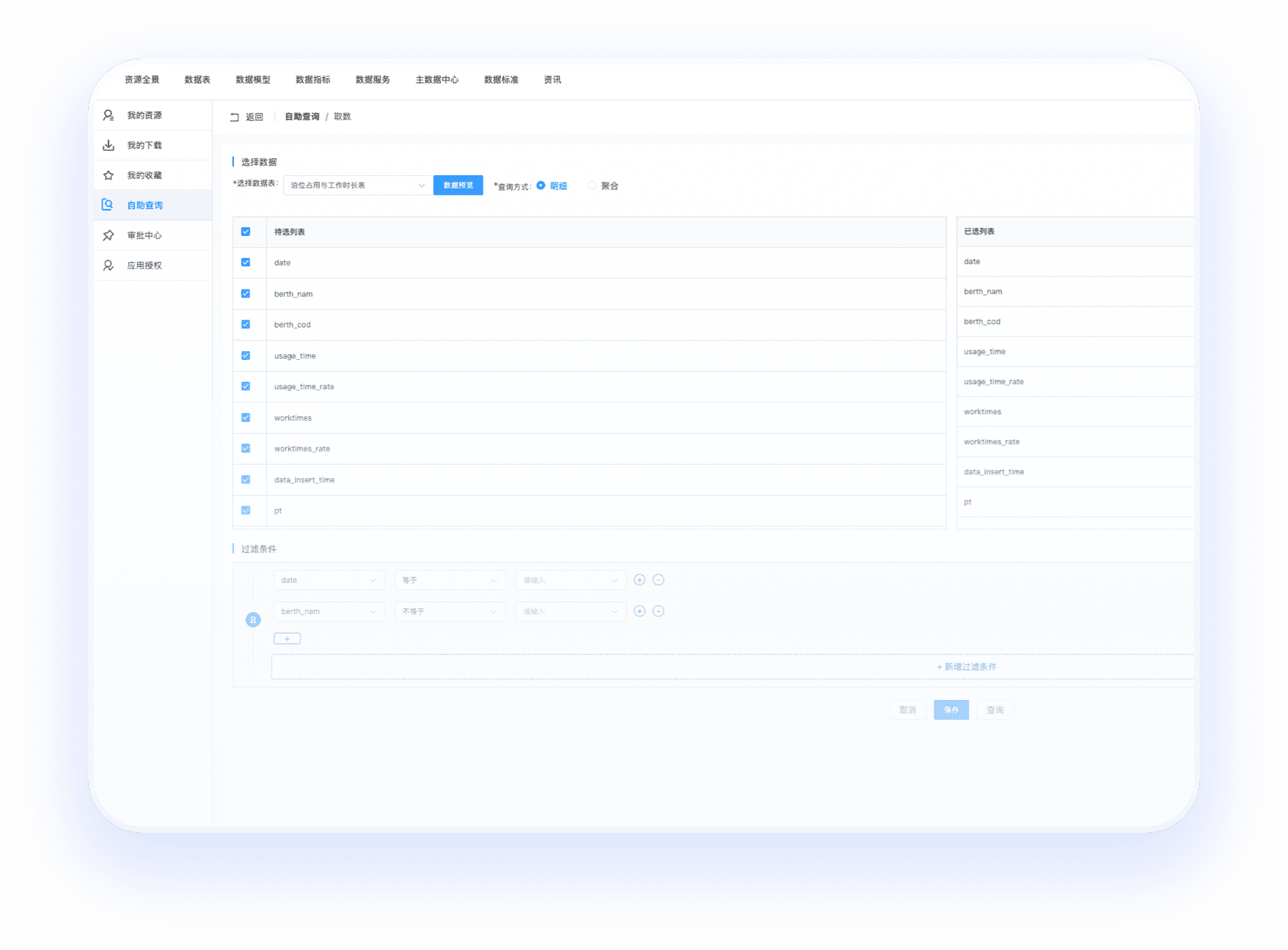 提供 API、数据服务集市等标准化共享工具,支持按权限分级开放数据;通过工作流引擎实现数据申请 - 审批 - 交付全流程线上化,集成数据脱敏、访问审计、字段级权限控制,保障数据流通合规高效。